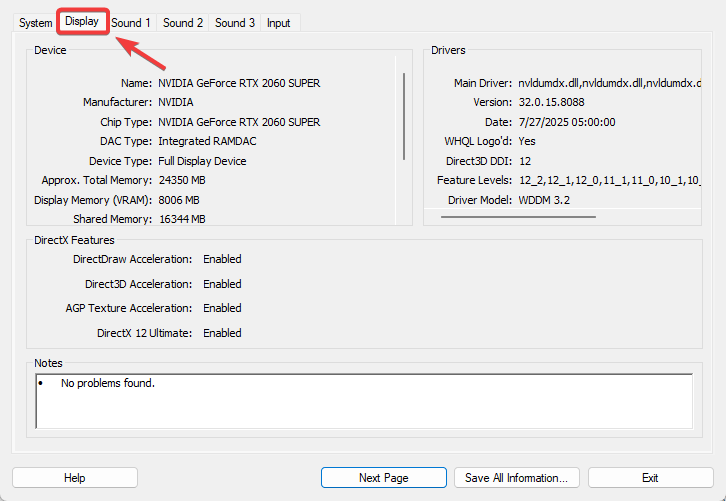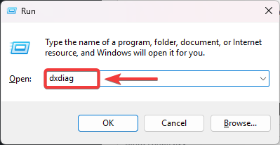 1. اضغط على Windows + R، اكتب dxdiag، ثم اضغط على Enter.