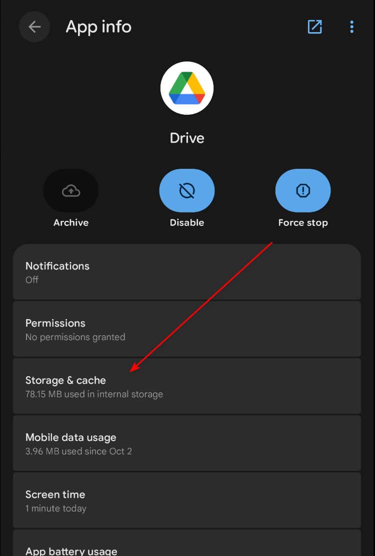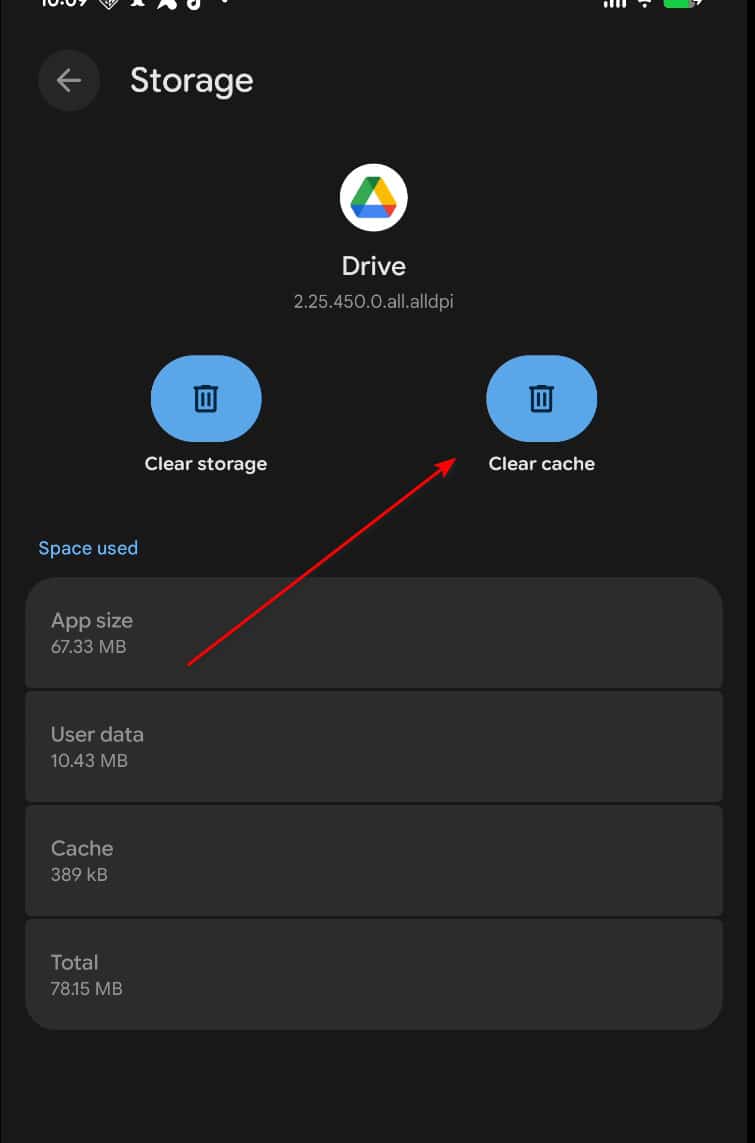 أحيانًا تتسبب ملفات التطبيق القديمة في اكتشاف خاطئ للشبكة. يساعد مسح ذاكرة التخزين المؤقت Drive على تحديث إعداداته. هذا لا يحذف ملفاتك.