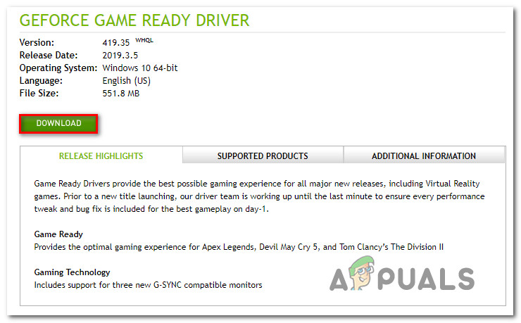 - بعد اكتمال بدء التشغيل التالي، قم بزيارة رابط التنزيل الرسمي لـ Nvidia وقم بتنزيل أحدث إصدار من برنامج تشغيل GPU المتوافق مع بطاقة الرسوميات الخاصة بك.