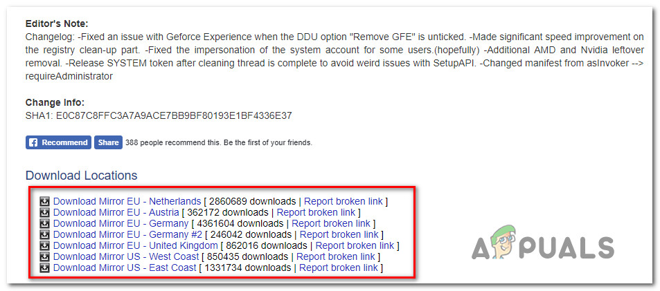 ملاحظة: ما لم تكن مستعدًا للانتظار لبعض الوقت قبل اكتمال التنزيل، اختر خادمًا (mirror) أقرب إلى موقعك الفعلي. - بعد اكتمال التنزيل، استخدم أداة استخراج مثل 7Zip أو WinZip لاستخراج محتويات أرشيف DDU.