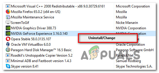 يتضح أن أحد الحلول الأكثر شيوعًا لهذه المشكلة بالذات هو إعادة تثبيت تثبيت Nvidia Experience الحالي جنبًا إلى جنب مع كل مكون وتبعيات مرتبطة به.