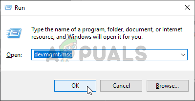 - افتح مربع حوار تشغيل واضغط على مفتاح Windows + R. بعد ذلك، اكتب ‘devmgmt.msc’ داخل مربع النص واضغط على Enter لفتح Device Manager. عندما يطالبك User Account Control (UAC)، انقر فوق نعم لمنح صلاحيات المسؤول.