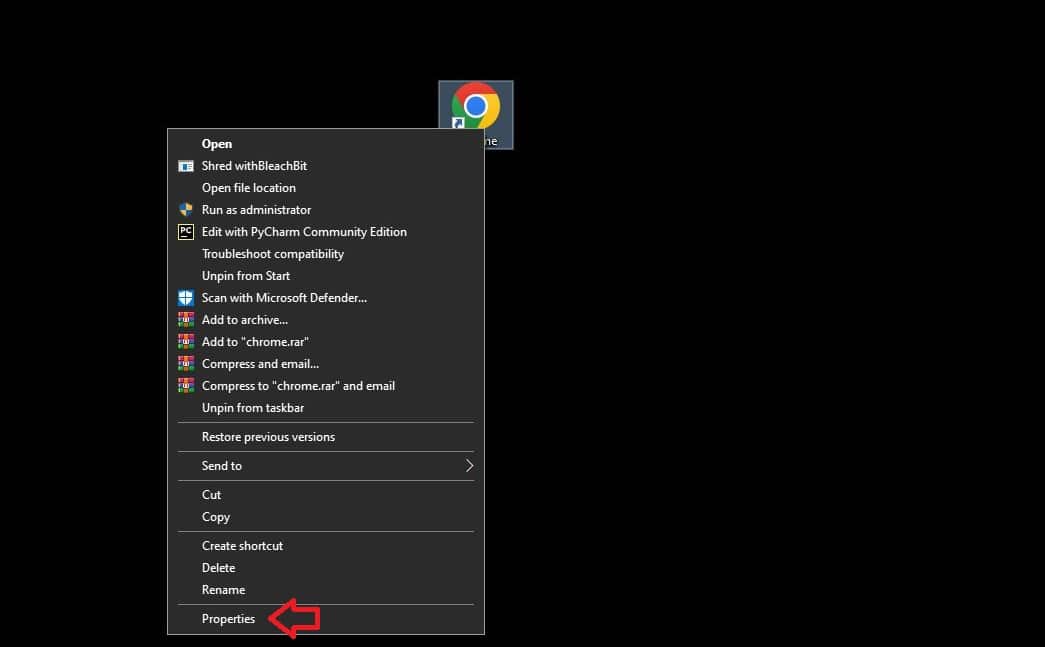 - انقر بزر الماوس الأيمن على اختصار Google Chrome (سواء على سطح المكتب أو شريط المهام) وحدد خصائص.