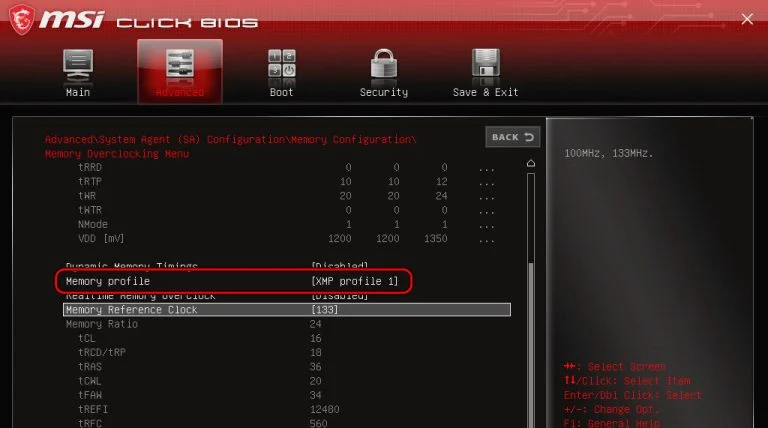 - نظرًا لأن الـ BIOS/UEFI يختلف لكل بائع، قم ببعض البحث بخصوص طراز اللوحة الأم الخاص بك وحدد موقع “إعدادات XMP“، والتي كانت في حالتنا تحت علامة التبويب “Advanced” (متقدم).