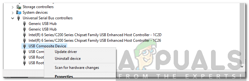 الحل 3: إعادة تثبيت جهاز USB المركب من إدارة الأجهزة