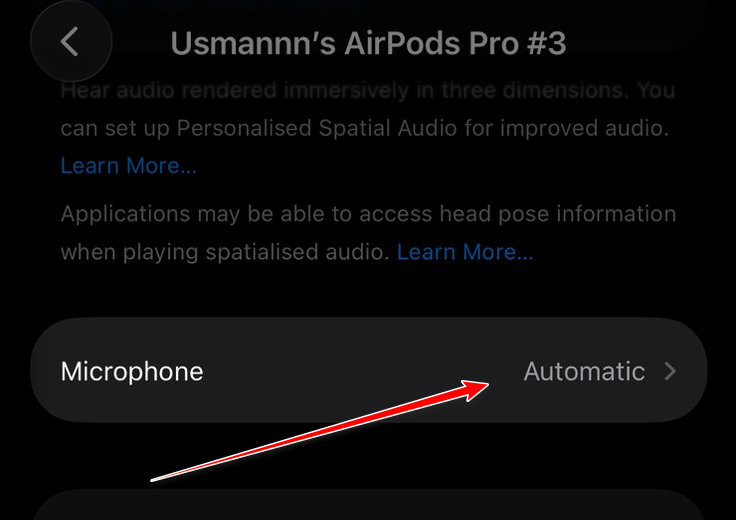 يمكن لـ AirPods تبديل الميكروفون بين اليسار/اليمين. إذا كان أحد الجانبين مسدودًا أو تعثر التبديل، فقد ينقطع صوتك. سيؤدي قفل الميكروفون على جانب واحد إلى إجراء اختبار ثابت ويساعد في تحديد AirPod تالفة.