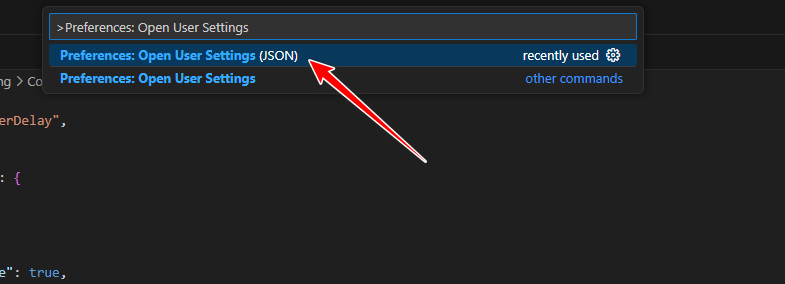 - اكتب Preferences: Open User Settings (JSON) وحدده.