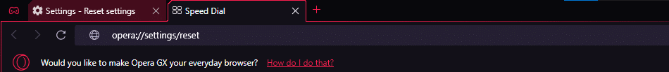 إذا كان المتصفح لا يزال لا يعمل بشكل صحيح، فقد يساعد إعادة تعيين إعدادات Opera GX إلى إعداداتها الافتراضية.