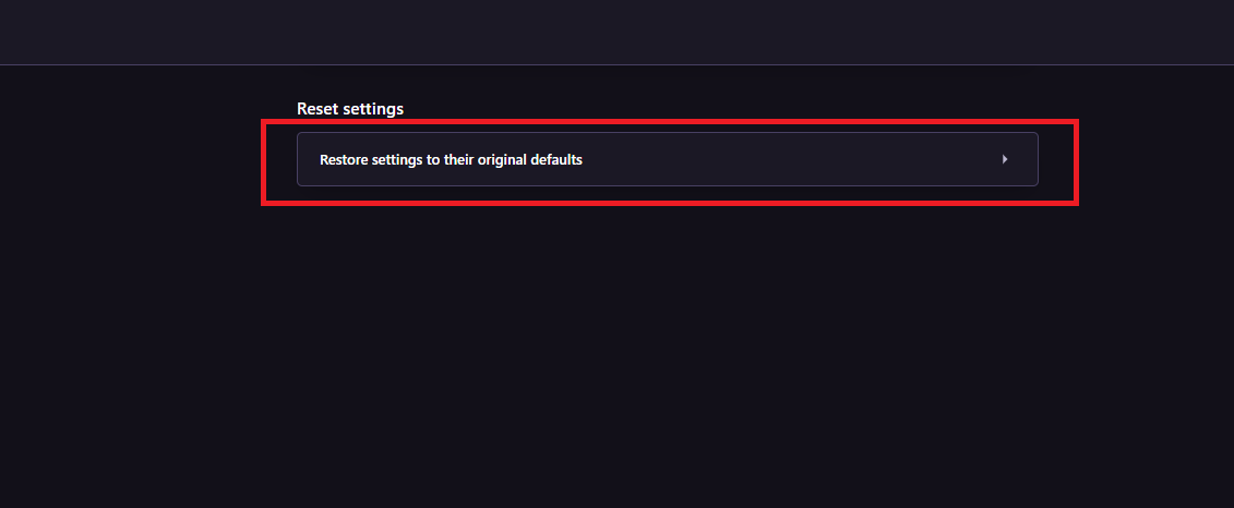 - انقر على ‘إعادة تعيين الإعدادات إلى قيمها الافتراضية الأصلية’.