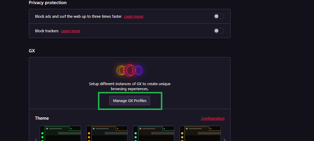- ادخل إلى إعدادات Opera GX بالنقر على أيقونة الترس.