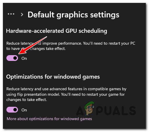 - أخيرًا، بمجرد دخولك إلى Default graphics settings، عطّل المفتاح المرتبط بـ Hardware-accelerated GPU scheduling.