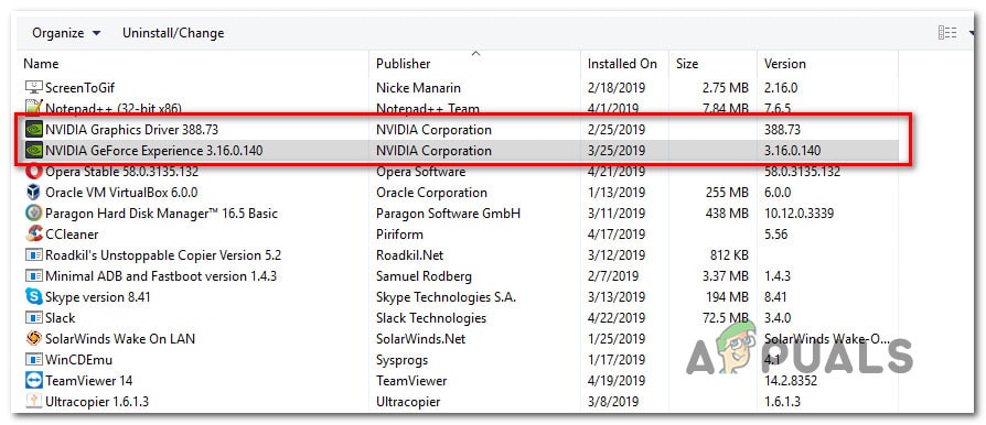 - بعد ذلك، قم بإلغاء تثبيت جميع مكونات Nvidia، بما في ذلك GeForce Experience PhysX System والبرامج الأخرى المنشورة بواسطة NVIDIA. يمكنك فرض إلغاء التثبيت عن طريق تحديد إلغاء التثبيت من قائمة السياق عند النقر بزر الماوس الأيمن على أي عنصر من عناصر NVIDIA.