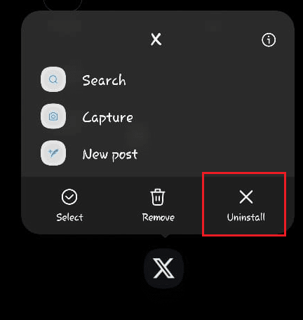 - اضغط مطولاً على أيقونة X(Twitter) وحدد إلغاء التثبيت.