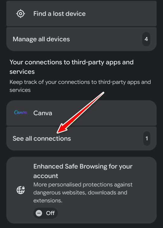 - مرر للأسفل إلى اتصالاتك بتطبيقات وخدمات الجهات الخارجية وانقر على الاطلاع على جميع الاتصالات.