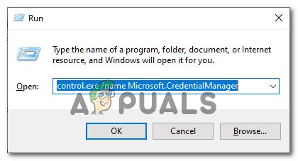 - بعد ذلك، اضغط على مفتاح Windows + R لفتح أمر تشغيل (Run) آخر. داخل مربع النص، اكتب ‘control.exe /name Microsoft.CredentialManager‘ واضغط على Enter لفتح Credential Manager.