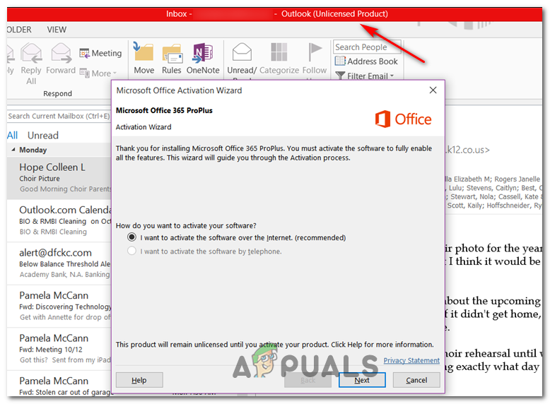 يُفيد العديد من مستخدمي Outlook بأنهم يرون خطأ ‘Unlicensed Product’ عند كل بدء تشغيل، على الرغم من دفع اشتراك شهري أو ربع سنوي أو سنوي لـ Office 365 و Office 2016. المشكلة ليست حصرية لنظام تشغيل معين، حيث تم الإبلاغ عنها على Windows 10 و Windows 8.1 و Windows 7.