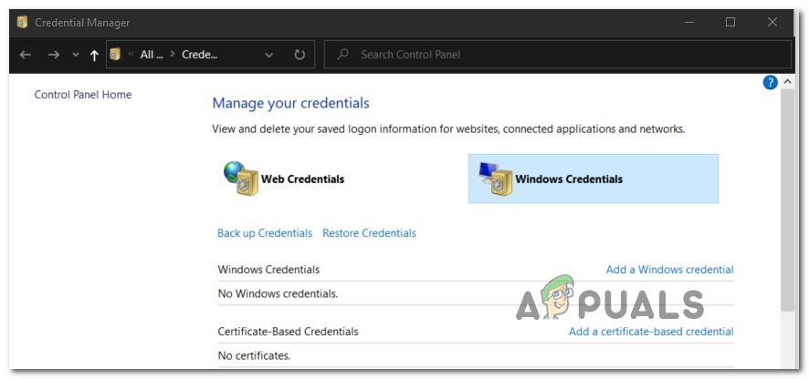 - بمجرد دخولك إلى Credential Manager، حدد Windows Credentials ضمن Manage your Credentials.