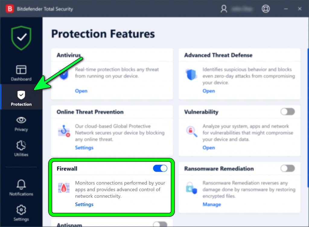5. تعطيل جدار حماية برنامج مكافحة الفيروسات مؤقتًا