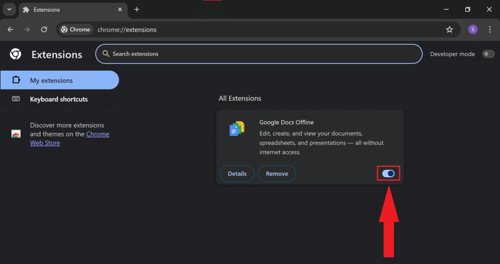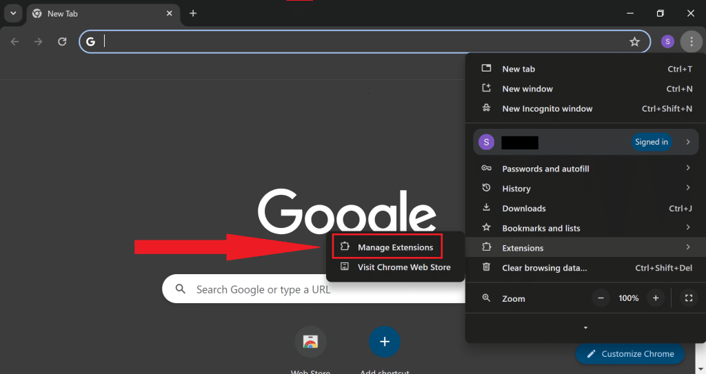 في بعض الأحيان، تتداخل الإضافات مع كيفية تحميل صفحات الويب وعملها، مما قد يكون السبب وراء الخطأ الذي تواجهه. يخدم تعطيل إضافات متصفحك غرضين؛ فهو لا يقلل فقط من استخدام موارد النظام، بل يمكنه أيضًا إزالة التعارضات المحتملة.