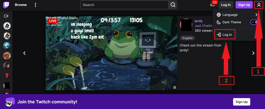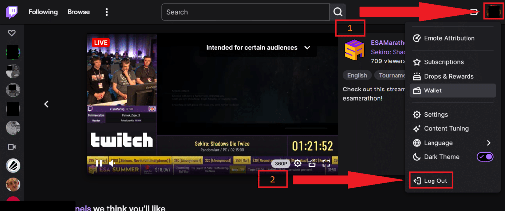 تؤدي إعادة تسجيل الدخول إلى إنشاء اتصال جديد بين حسابك وخوادم Twitch، مما يمكن أن يصلح الأعطال الطفيفة وبيانات الجلسة المنتهية الصلاحية، ويساعد في حل العديد من الأخطاء.