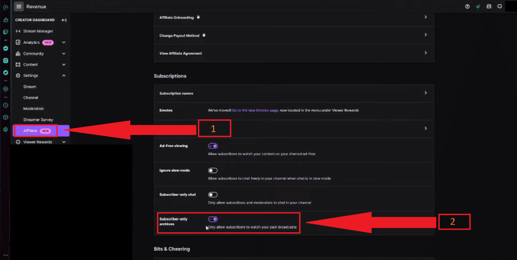 قد يؤدي تعطيل إعداد الأرشيفات المخصصة للمشتركين فقط إلى حل خطأ القص لأنه يزيل القيود على من يمكنه إنشاء المقاطع. إذا كان هذا الإعداد ممكّنًا، فلن يتمكن سوى المشتركين من قص البثوث، مما قد يؤدي إلى أخطاء للمستخدمين غير المشتركين عند محاولتهم القص.