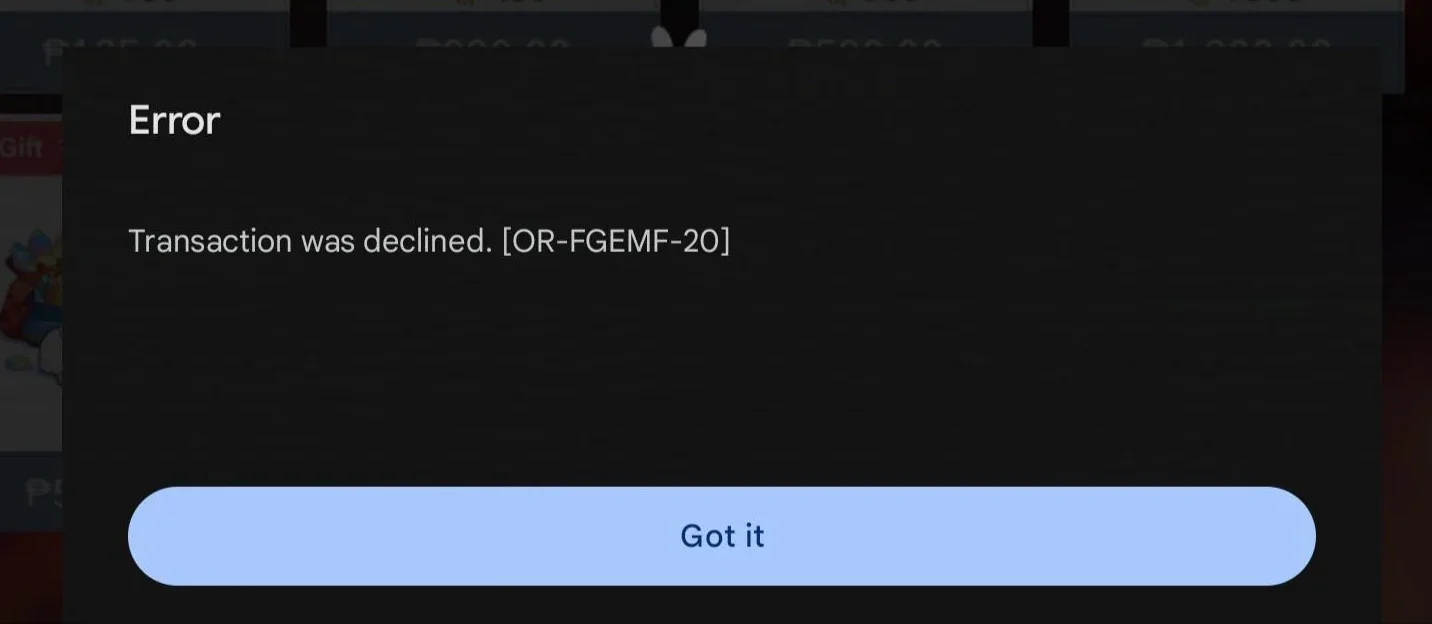 يظهر الخطأ OR-FGEMF-20 في Google Play عند محاولة إتمام عملية شراء داخل التطبيق أو اشتراك. يمنع هذا الخطأ إتمام المعاملة ويشير إلى أن نظام الدفع الخاص بـ Google Play قد رفض عملية الشراء الخاصة بك.