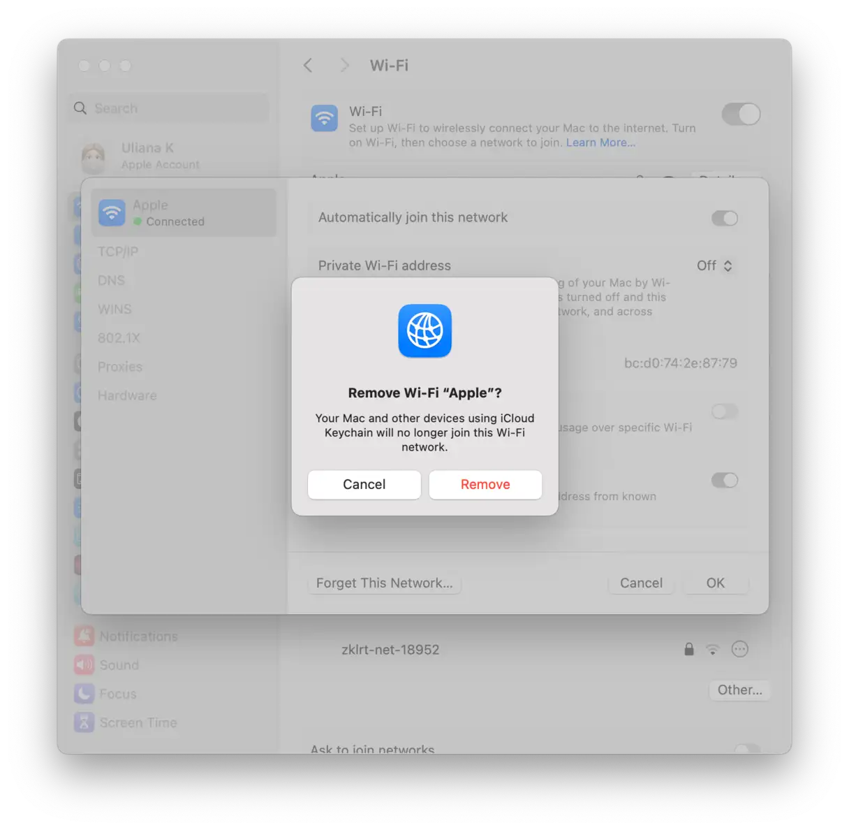 - إزالة الشبكة من الإعدادات: انتقل إلى “System Settings” (إعدادات النظام) ثم “Network” (الشبكة) ثم “Wi-Fi”. انقر على زر النقاط الثلاث الموجود بجوار اسم الشبكة التي تواجه مشاكل معها، واختر “Forget This Network” (تجاهل هذه الشبكة). هذه الخطوة ضرورية لحذف أي إعدادات محفوظة قد تكون السبب في المشكلة.