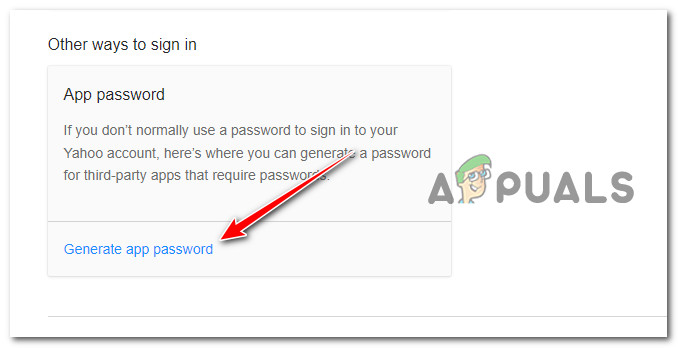 - بيانات اعتماد غير صحيحة – كما يتضح، قد تواجه هذه المشكلة أيضًا في سيناريو يكون فيه كلمة المرور الفعلية التي تستخدمها عند ربط بريد Yahoo الخاص بك بتطبيق البريد في Windows غير صحيحة. لإصلاح هذه المشكلة، قم بتسجيل الدخول إلى بريد Yahoo الخاص بك من أي متصفح وأنشئ كلمة مرور لتطبيق آخر واستخدمها لإتمام الاتصال.