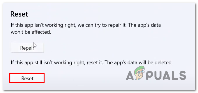 - بعد الانتهاء من عملية الإصلاح، انقر على زر إعادة التعيين أدناه ثم انقر عليه مرة أخرى للتأكيد.