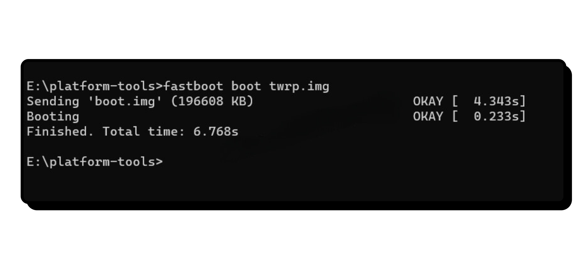- سيتم استخدام نافذة Command Prompt (Windows) أو Terminal (macOS) هذه لدفع أوامر ADB لتفليش TWRP.