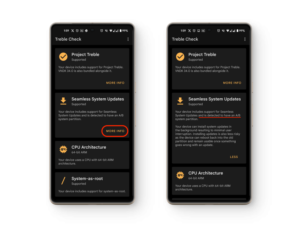- إذا قرأ التطبيق “…وتم الكشف عن وجود تقسيم نظام A/B“، فلديك تقسيم A/B، وإلا فإن جهازك يستخدم تقسيم A-only واحدًا.