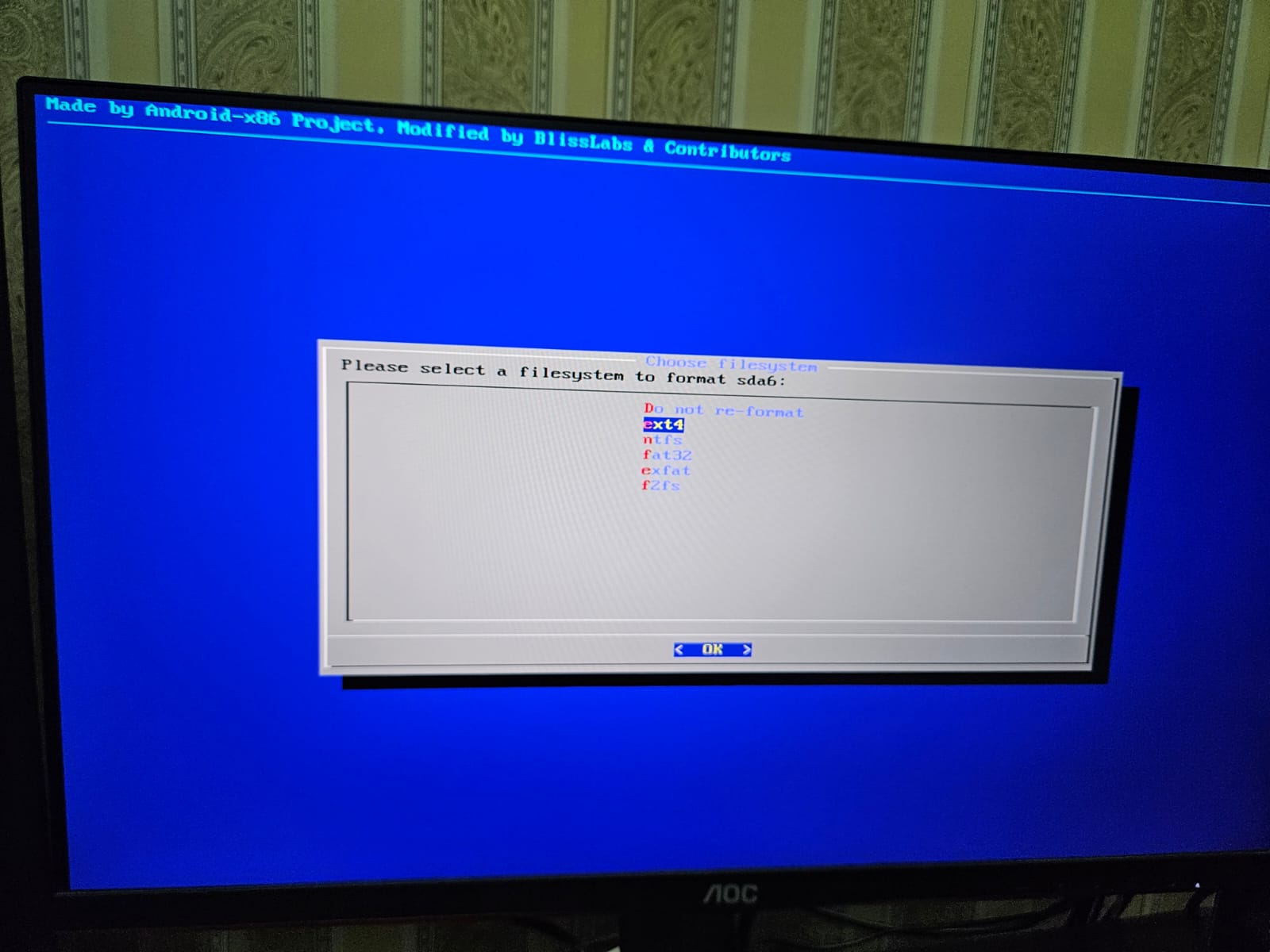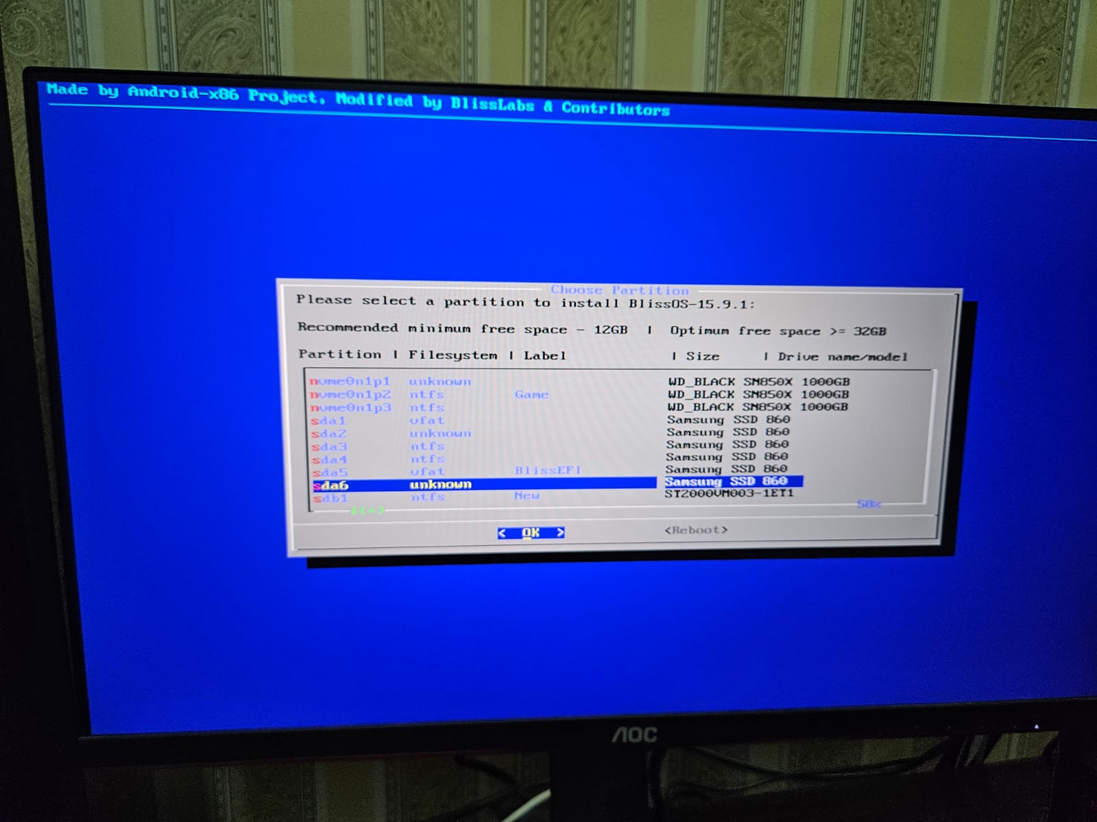 - بعد التهيئة، ستعود إلى صفحة تحديد الأقسام. هذه المرة، يجب علينا تحديد “A“، وهو القسم الكبير، والذي في حالتنا هو “sda6“.