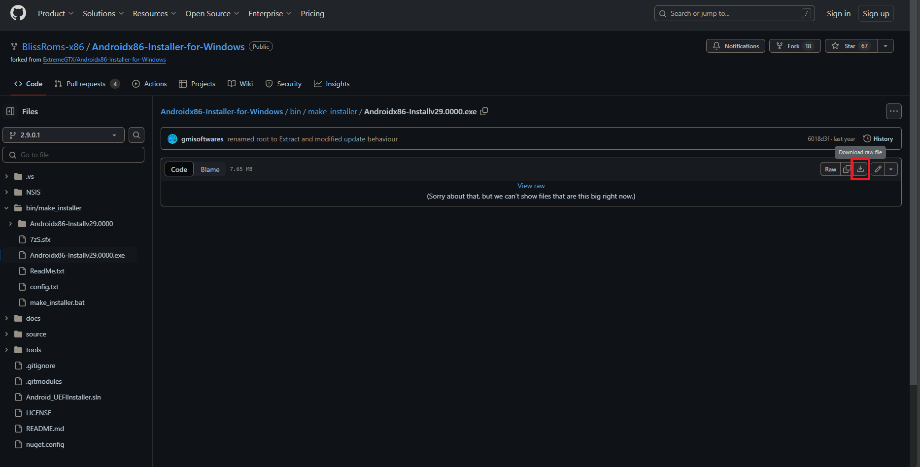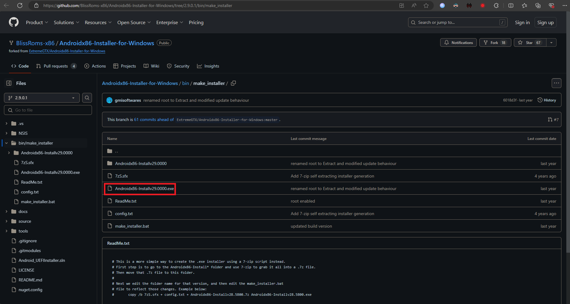 - استخدم الرابط التالي لزيارة مستودع GitHub الذي يحتوي على مثبت Androidx86. عادةً ما يوجد أحدث ملف .exe في مجلد /bin/make_installer.