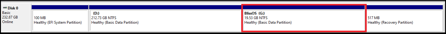- بعد النقر على “Finish“، تكون قد أنشأت قسمًا جديدًا بنجاح سنقوم بتثبيت BlissOS عليه في القسم التالي.