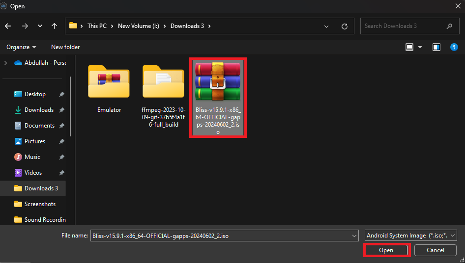 - بمجرد فتح الواجهة، في قسم “Android OS Image“، استعرض وحدد مكان تنزيل ملف BlissOS .iso.
