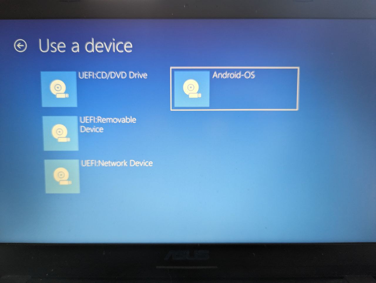 - انقر على “Use a device” وفي الصفحة التالية اختر “Android-OS“. (مصدر الصورة: BlissOS)