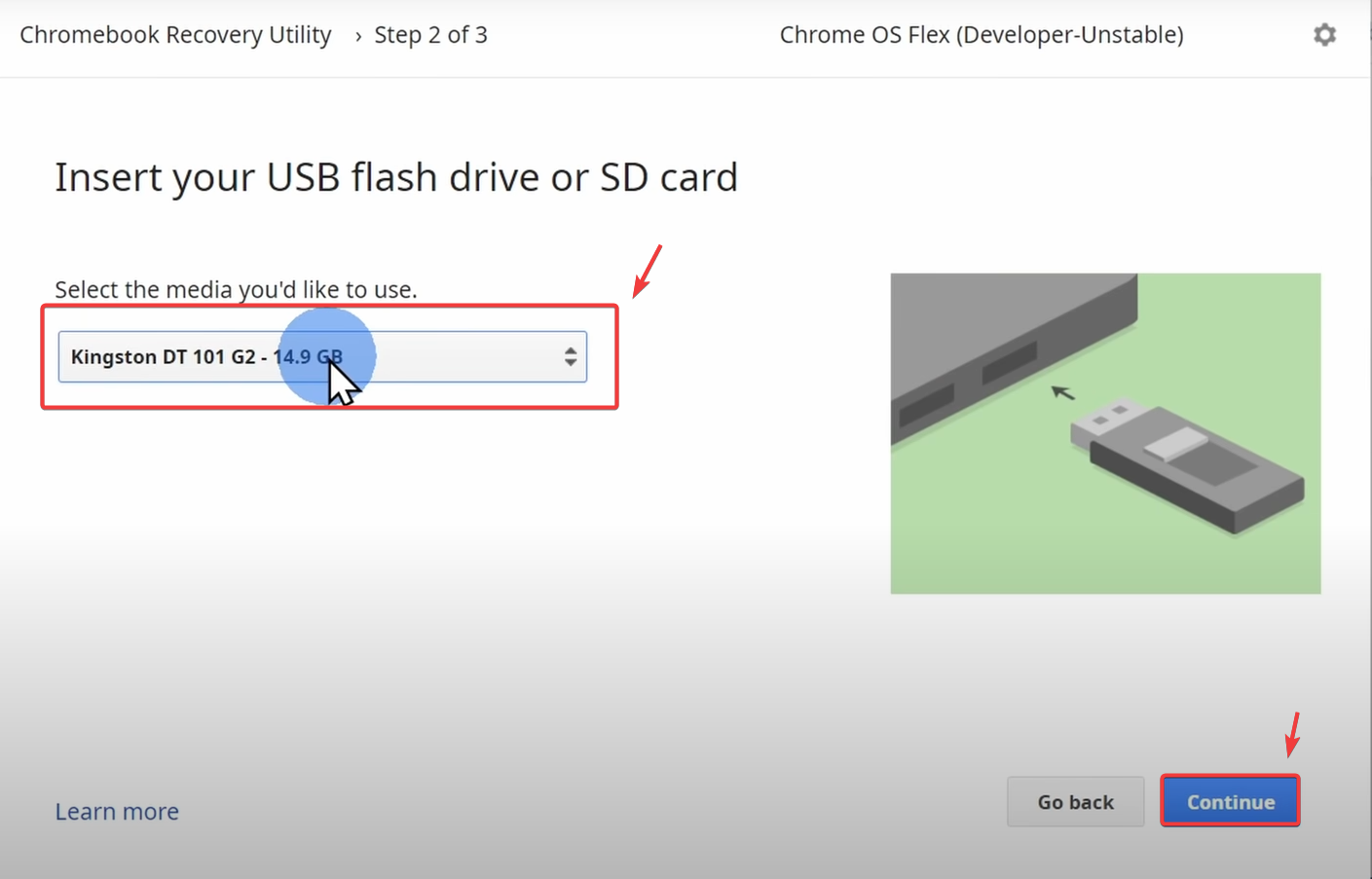 لتثبيت Chrome OS Flex، تحتاج إلى إنشاء أداة تثبيت USB. أدخل محرك أقراص USB في جهاز الكمبيوتر الخاص بك واتبع الخطوات بعناية لتثبيت Chrome OS Flex.