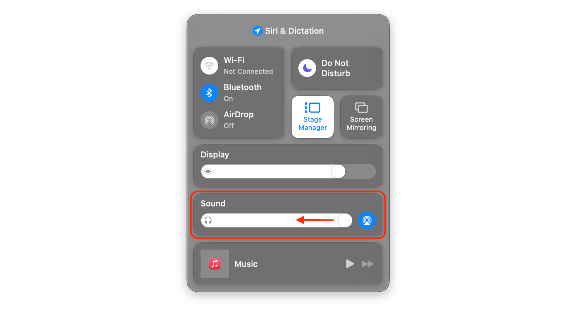 2. ابحث عن قسم الصوت (أسفل شريط تمرير الشاشة/السطوع).