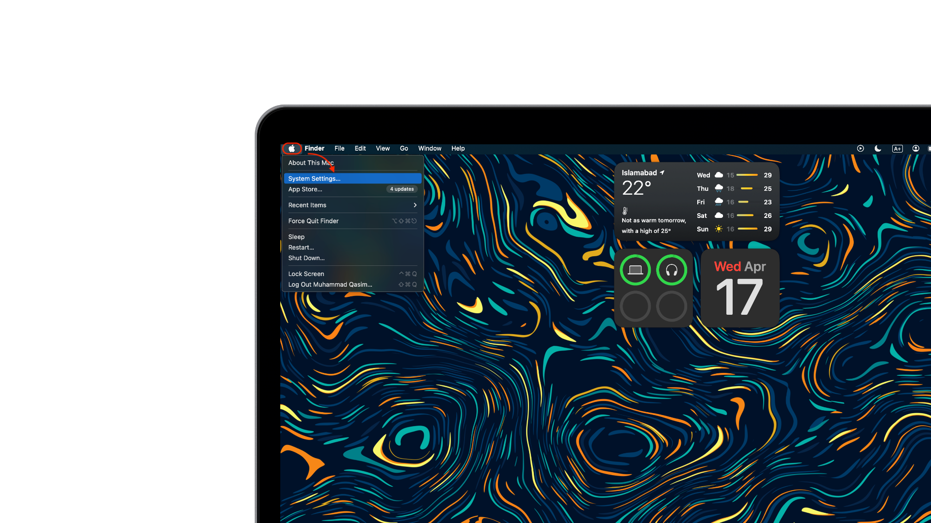1. افتح إعدادات النظام عبر قائمة Apple  > إعدادات النظام.
