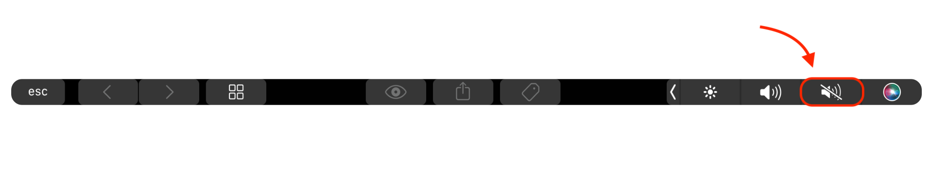 بالنسبة لطرازات MacBook Pro الأقدم المجهزة بشريط Touch Bar، يمكنك النقر على زر كتم الصوت في شريط Touch Bar لإسكات جميع الأصوات وإشعارات الصوت على الفور.