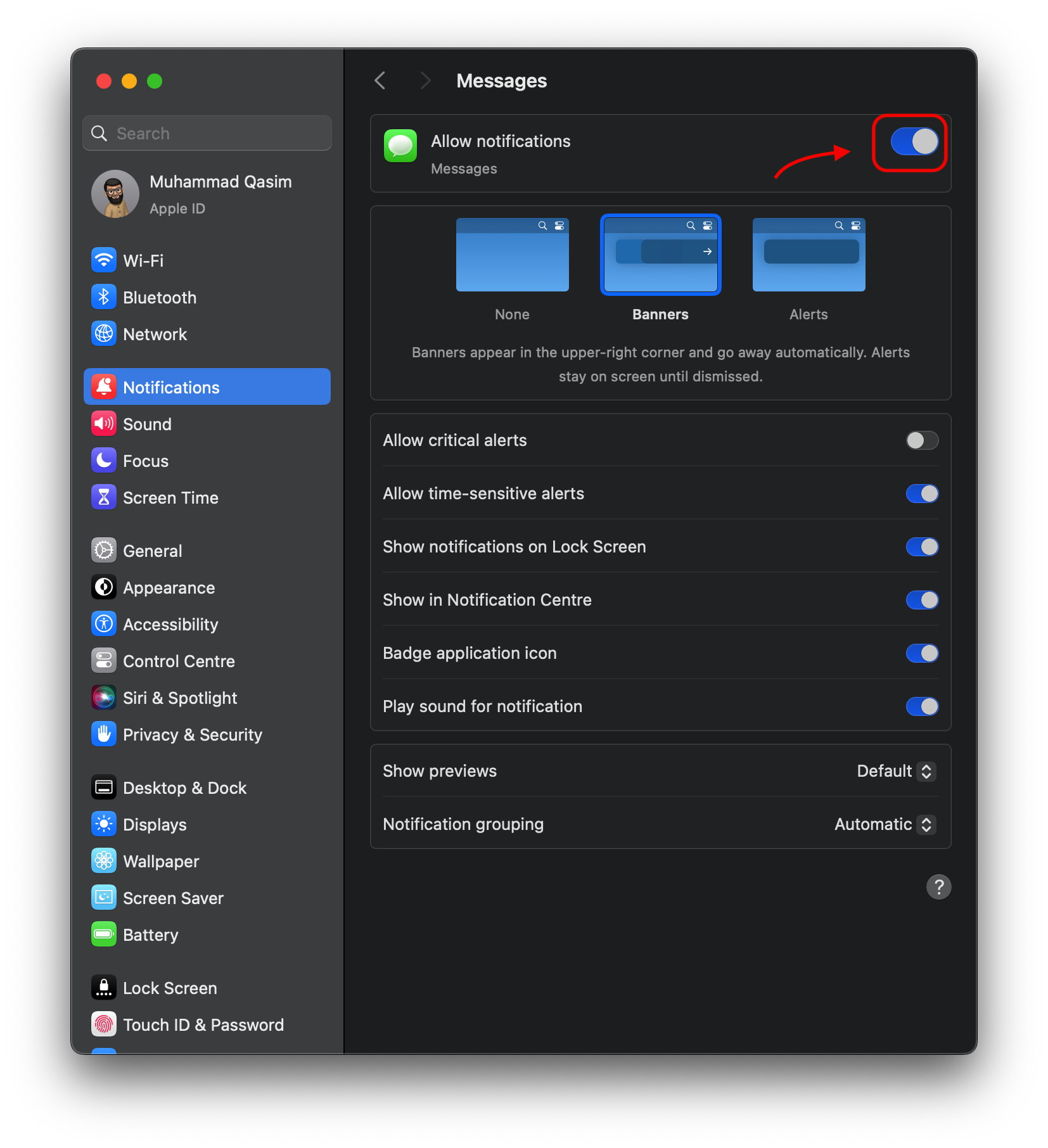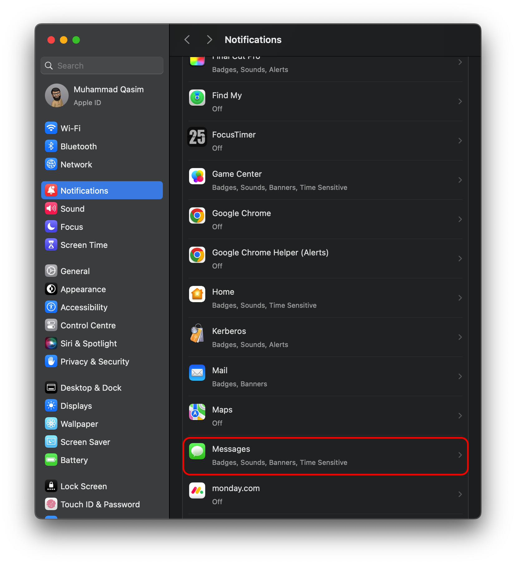 الطريقة 1: كتم إشعارات تطبيق “الرسائل” على Mac