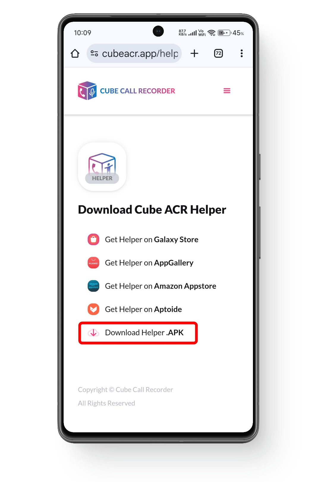 - نظرًا لأن Cube ACR قد لا يعمل على النحو الأمثل في إصدارات Android الأحدث بدون دعم إضافي، قم بتنزيل Cube ACR Helper APK من موقعهم الرسمي.