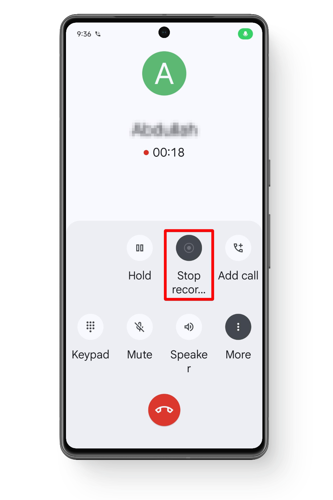 - أثناء المكالمة، اضغط على زر تسجيل. في بعض الأجهزة، قد يكون هذا موجودًا في قائمة (مثل Samsung).