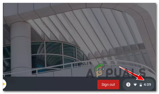 1. من شاشة سطح المكتب لجهاز Chromebook الخاص بك، انقر على الساعة (الزاوية السفلية اليمنى).