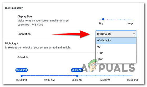 ملاحظة: الجانب السلبي الوحيد لهذه الطريقة هو أنها ستقوم بتدوير الشاشة 90 درجة في اتجاه عقارب الساعة فقط. إذا كنت تبحث عن ضبط دقيق لاتجاه شاشتك على Chromebook، فانتقل إلى الحل المحتمل التالي أدناه.