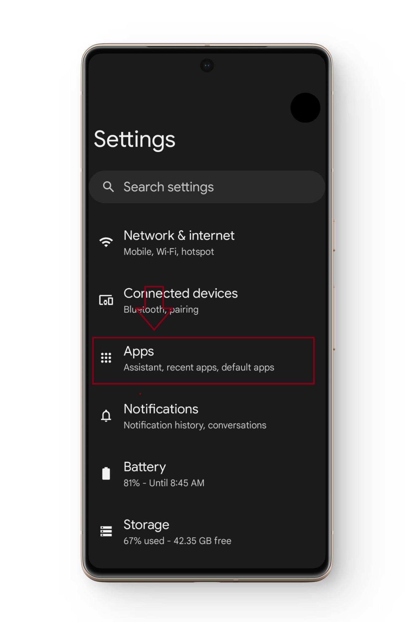 - انتقل إلى الإعدادات بهاتفك واضغط على التطبيقات.