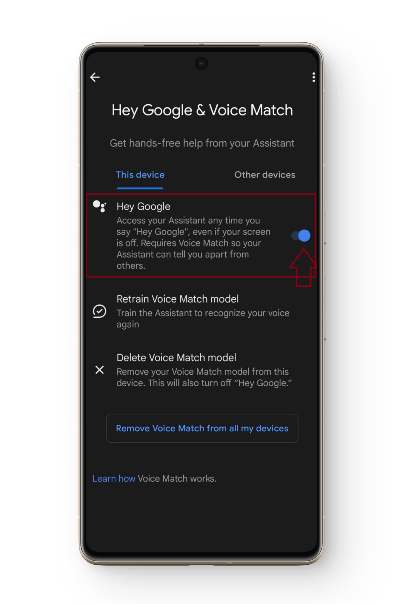 تدعي Google أنها لا تجمع أي بيانات شخصية إذا قمت بتشغيل ميزة Hey Google. ومع ذلك، لا يزال بإمكانك تعطيل الميزة في إعدادات هاتفك وقتما تشاء.