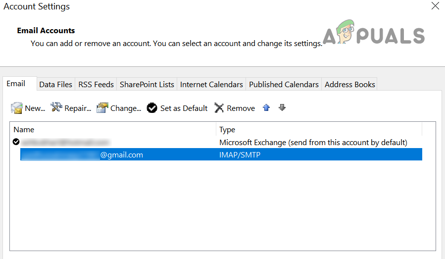 1. افتح إعدادات الحساب لـ Gmail في عميل البريد الإلكتروني الخاص بك، مثل Outlook، وفي علامة التبويب البريد الإلكتروني، انقر نقرًا مزدوجًا على عنوان Gmail.