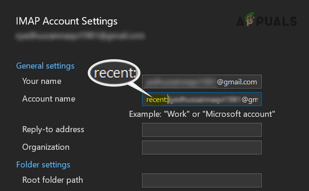 2. في مربع اسم الحساب، أضف “recent:” قبل اسم حسابك، على سبيل المثال، إذا كان اسم حسابك هو testuser@gmail.com، فقم بتغييره إلى recent:testuser@gmail.com.