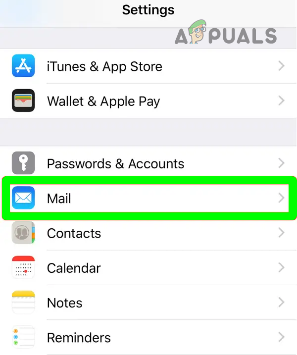 1. اذهب إلى إعدادات iPhone وافتح Mail (أو كلمات المرور والحسابات).